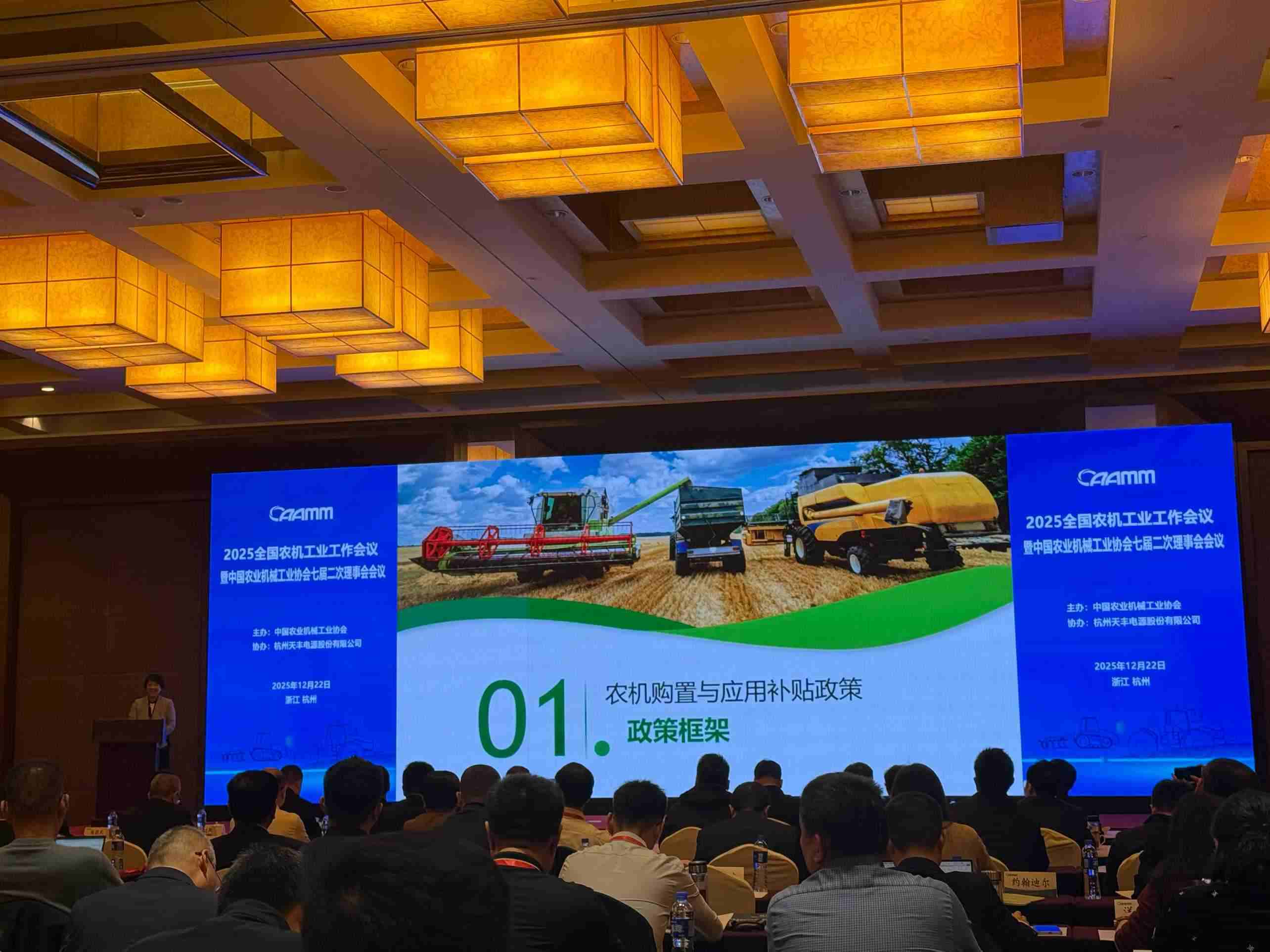 12 декабря 2025 года в городе Ханчжоу, провинция Чжэцзян, состоялась Национальная рабочая конференция сельскохозяйственной машиностроительной отрасли и второе заседание Совета седьмой Китайской ассоциации сельскохозяйственной машиностроительной отрасли.