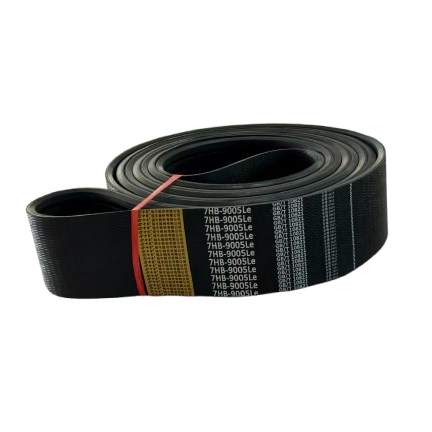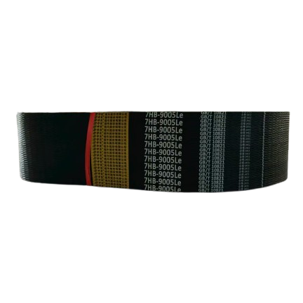 Многоручьевой клиновой ремень с красной этикеткой марки RUINIU 7HB9005Le, изготовленный из высококачественного арамидного корда и хлоропренового каучука, отличается хорошей устойчивостью к изгибу, высокой грузоподъемностью и повышенной износостойкостью.